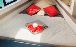 Si vous n’avez pas un CV nautique valide nous vous demanderons de prendre les services d’un skipper professionnel. Même avec un skipper à bord vous restez le signataire du contrat de location. Vous êtes donc responsable du bateau. Le skipper dort à bord du bateau, il lui faudra donc une couchette soit dans une cabine réservée pour lui, soit dans le carré soit dans une pointe aménagée. Le skipper ne fait pas la cuisine et le nettoyage du bateau. Pour la cuisine vous pouvez prendre les services d’une hôtesse qui se chargera de la préparation des repas et du nettoyage du carré. L’hôtesse devra avoir sa couchette soit dans une cabine réservée pour elle, soit dans une pointe aménagée. Si vous prenez les services d’un skipper et/ou d’une hôtesse, pensez à les prévoir dans l’avitaillement.